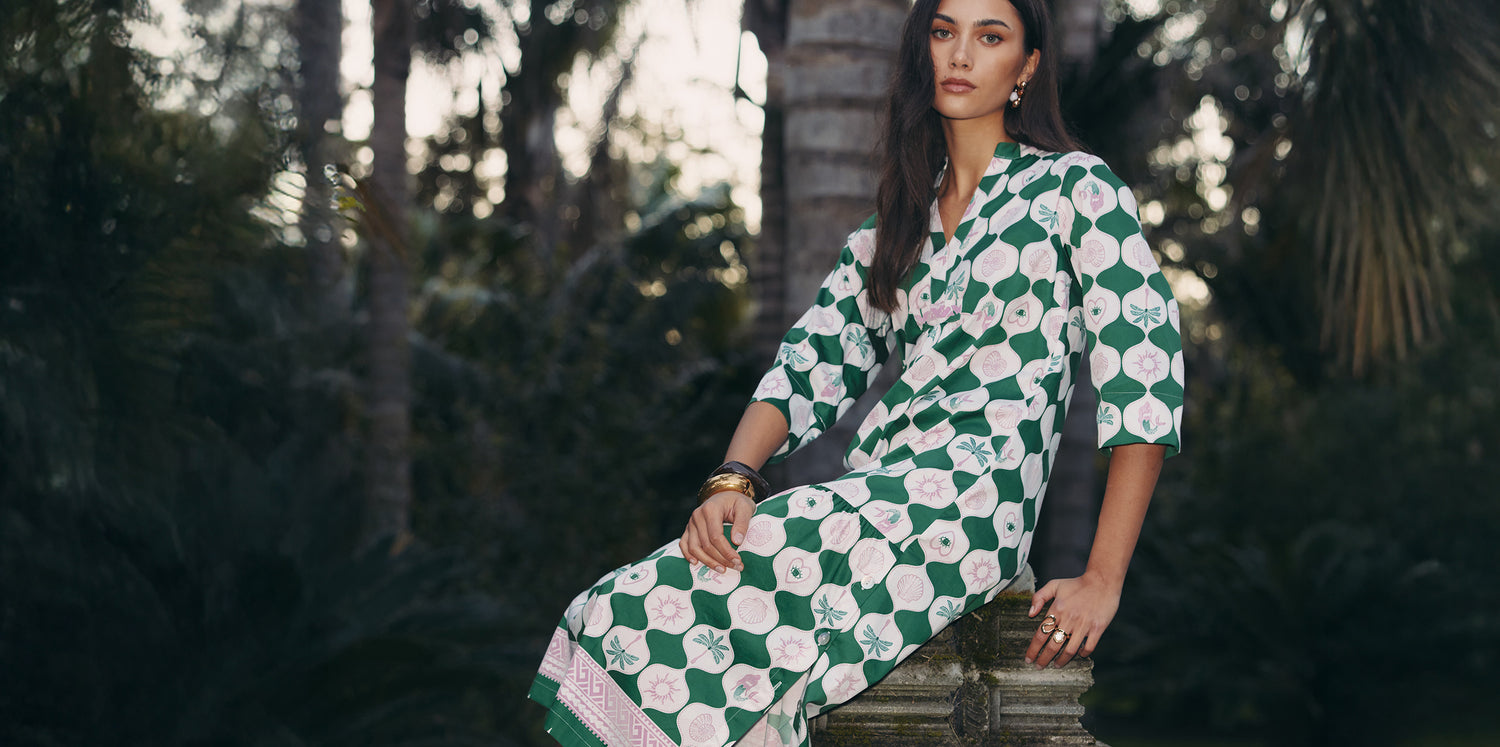 Fleur Smock Dress / Mint-Navy