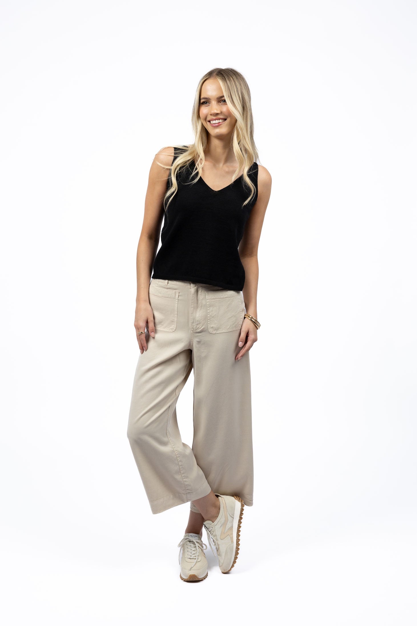 A must-have summer basic that’s lightweight and breathable. This flattering v-neck tank pairs perfectly with just about everything – shorts, skirts, jeans, or pants – what’s not to love? We’ve styled it here with our Margot Drill Pant and Marley Pant. For a head-to-toe Humidity look, add the Coco (available October) or Buckle slide (available November).