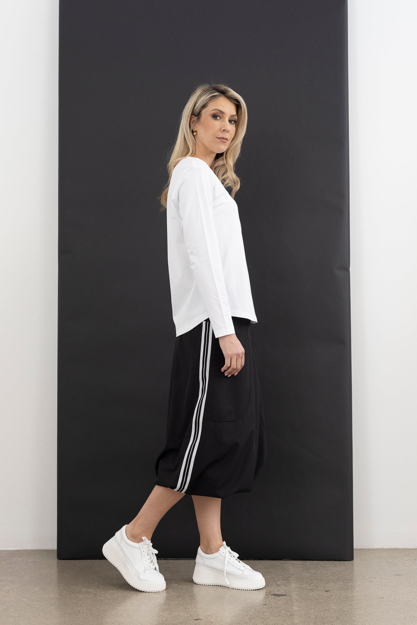 The Live in Black Tee is here to support your everyday style with comfort and ease. Crafted from soft cotton fabric, this long-sleeve tee features a relaxed fit that gently shapes around your body—square cut at the hem and through the bodice to sit just above the hip. A understated graphic adds visual interest without overwhelming your look. Whether you're wearing it solo or layering it with other pieces, this tee adapts to your needs and your mood. We recommend sizing up if you prefer a roomier fit. Choose from our range of versatile colours to find the perfect match for your wardrobe and personal style.