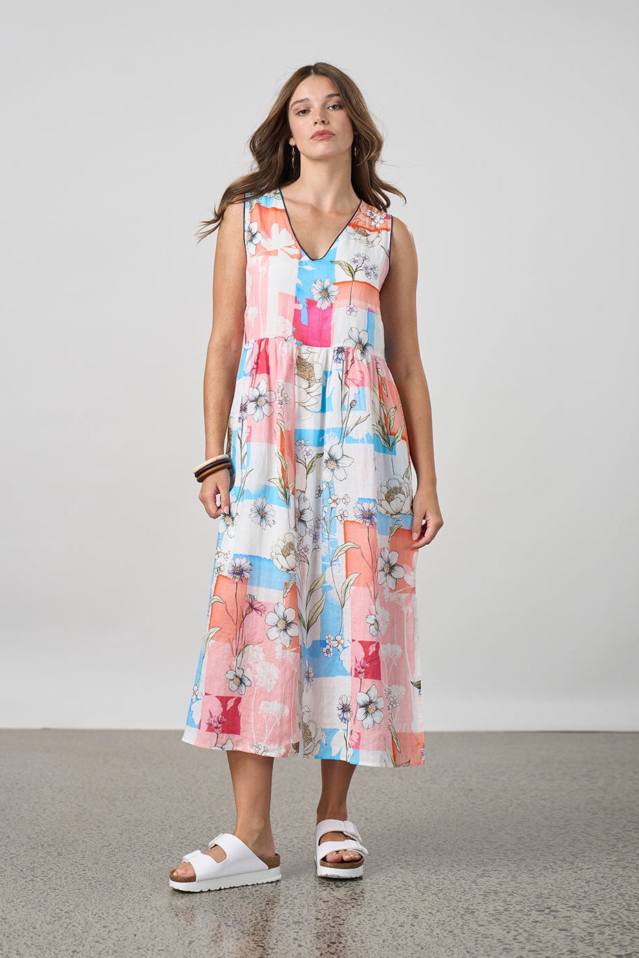 Printed, V-neck dress with bust darts and waist seam for a perfect fit, with a gathered skirt for ease.
