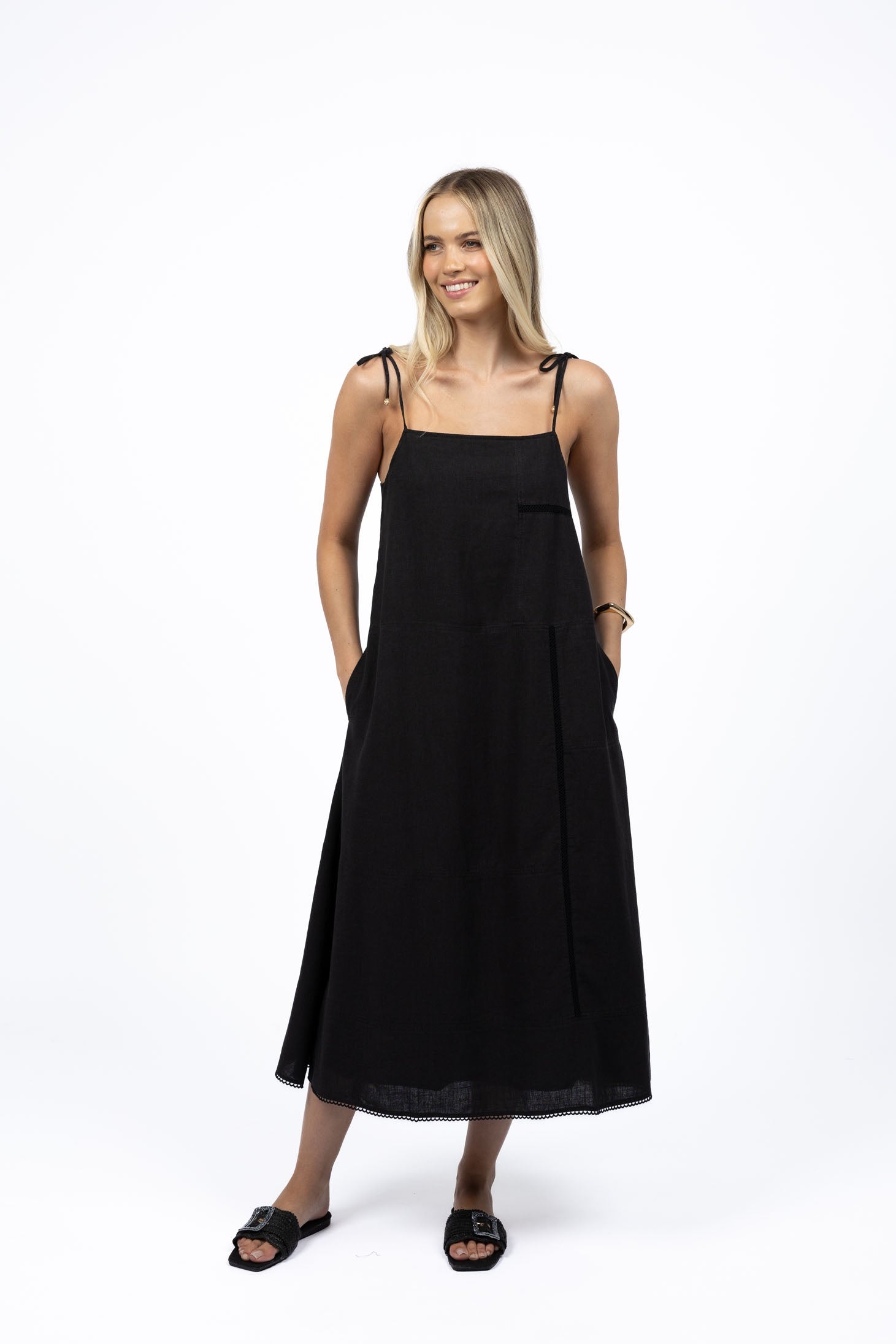 Crafted from a breathable linen blend, featuring ramie cotton and tencel (an eco-friendly yarn) the Millie Dress carries subtle details that elevate her flattering shape.