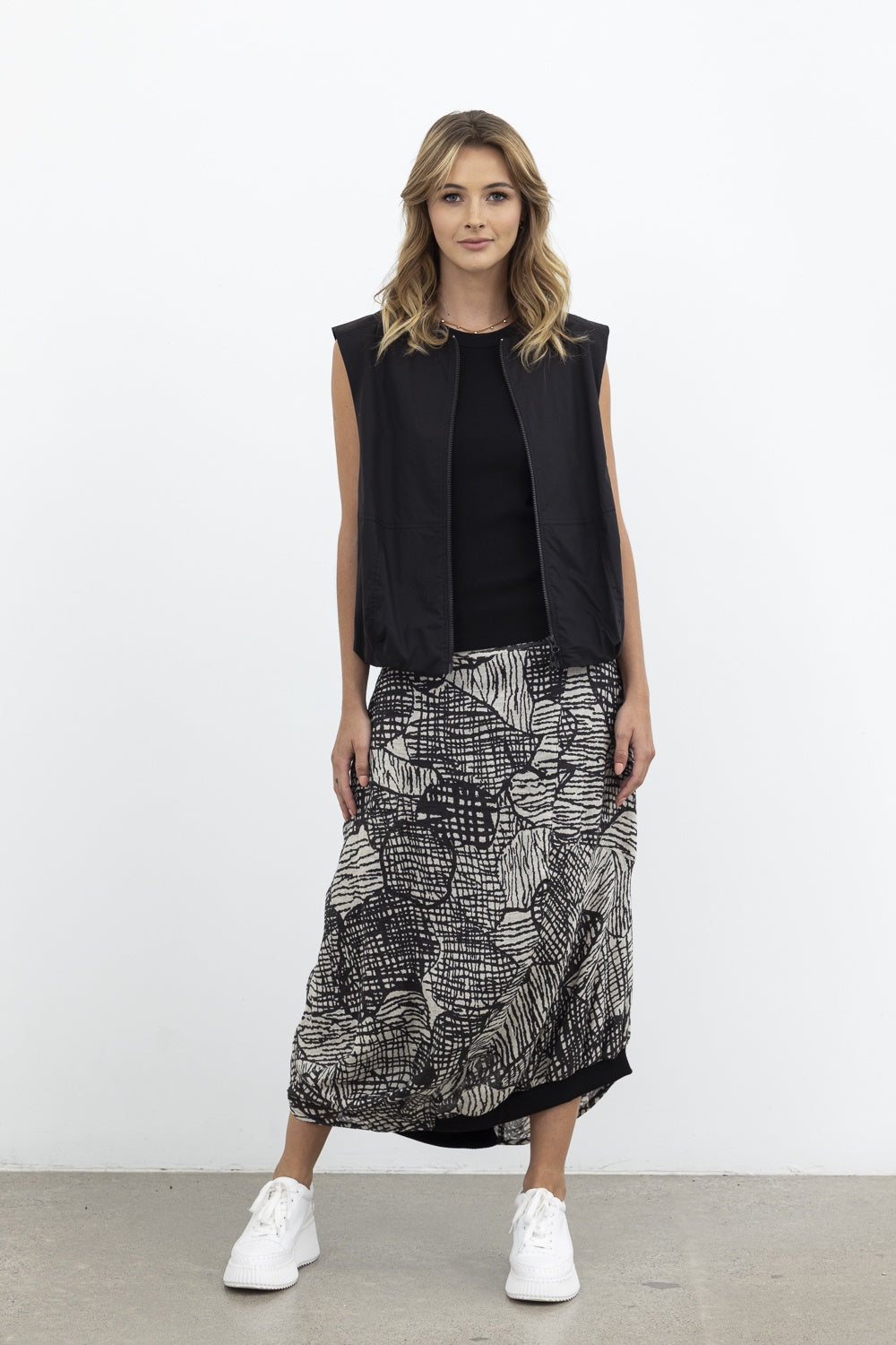 The Pixelated Pattern Skirt brings an artful twist to your everyday styling. Designed with a bold monochrome print and a softly structured silhouette, it moves beautifully with every step while keeping a modern, urban edge. The ribbed hemline adds a hint of casual cool, making it perfect to dress up or down.