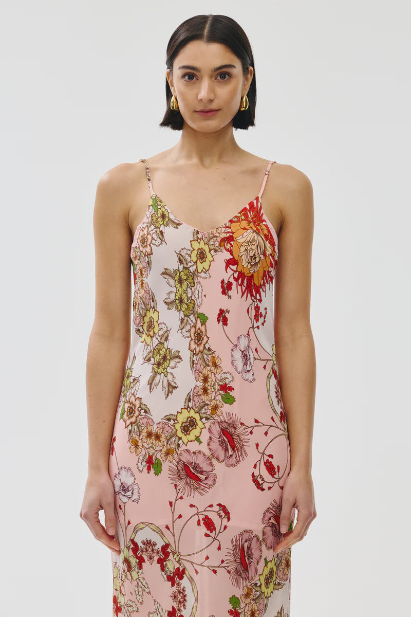 The Rou Slip Dress is a bias cut, full-length piece with a classic v-neckline, giving a flattering feminine silhouette that will drape effortlessly following the curves of your body.