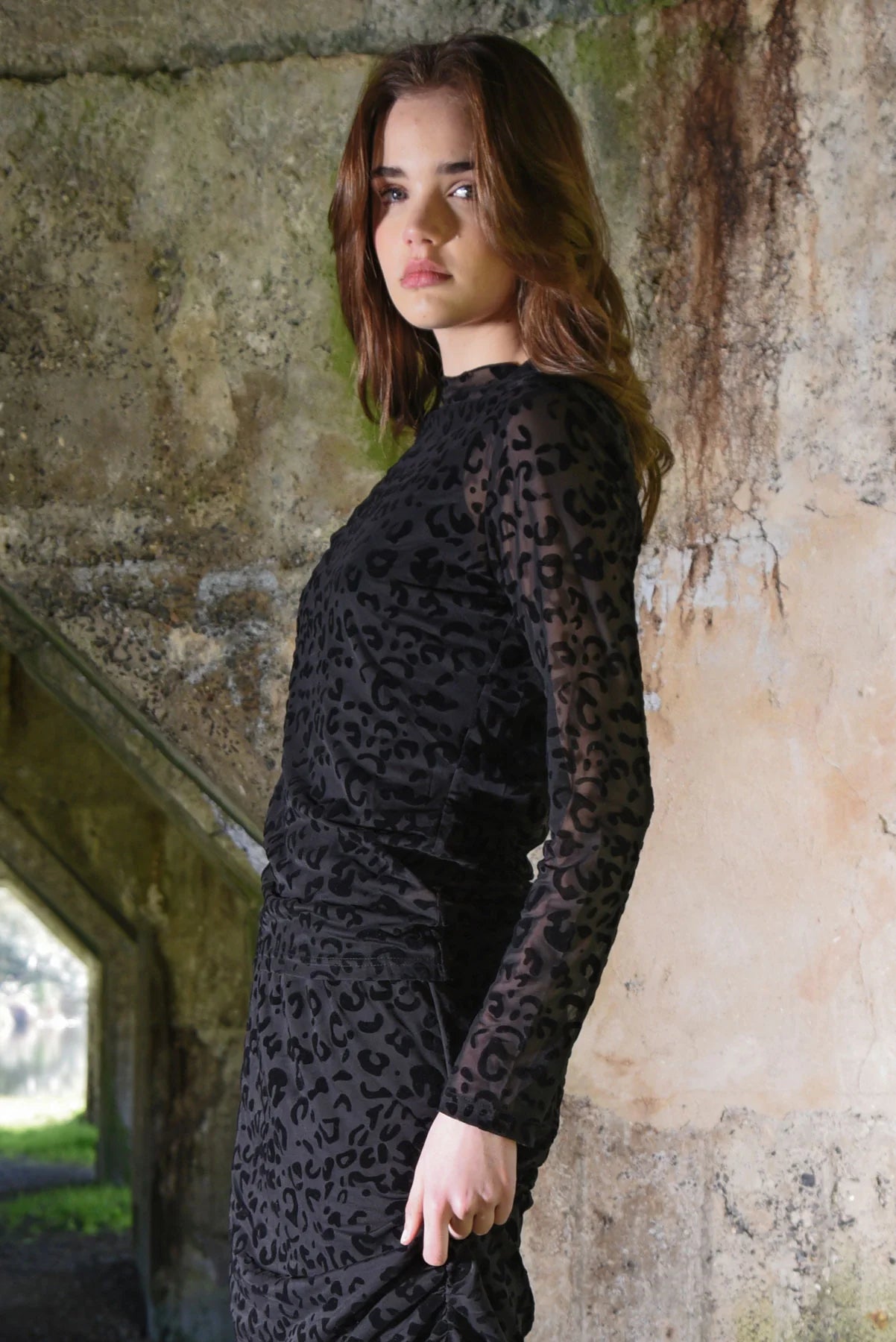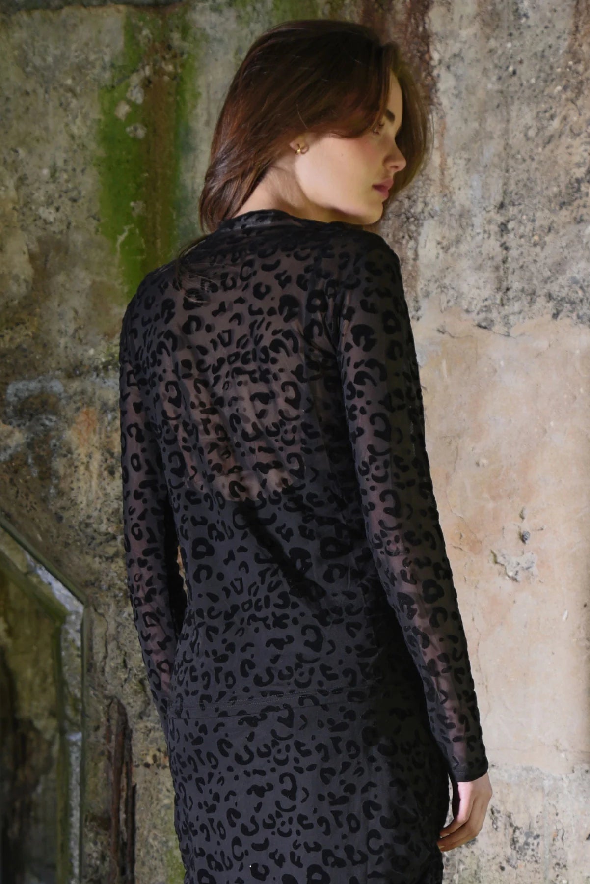 Unleash your inner wild side with the ‘Spotted in the Wild’ top. Boasting the sleek ‘Roar Material’ leopard flocked mesh fabrication that adds edge and sophistication to any outfit, it’s lightweight, breathable fabric hugs in all the right places, perfect for wearing solo or layering under dresses or tops.
